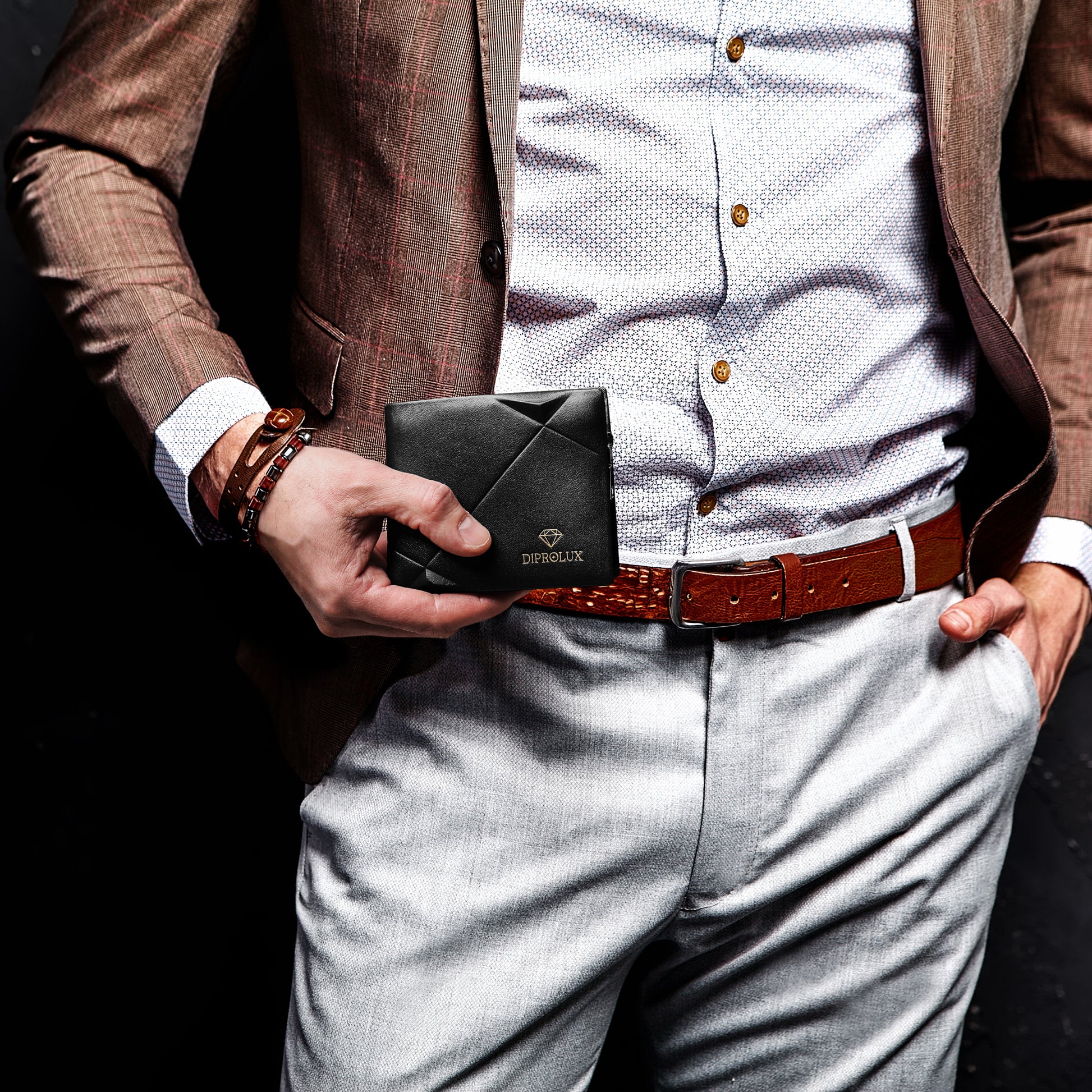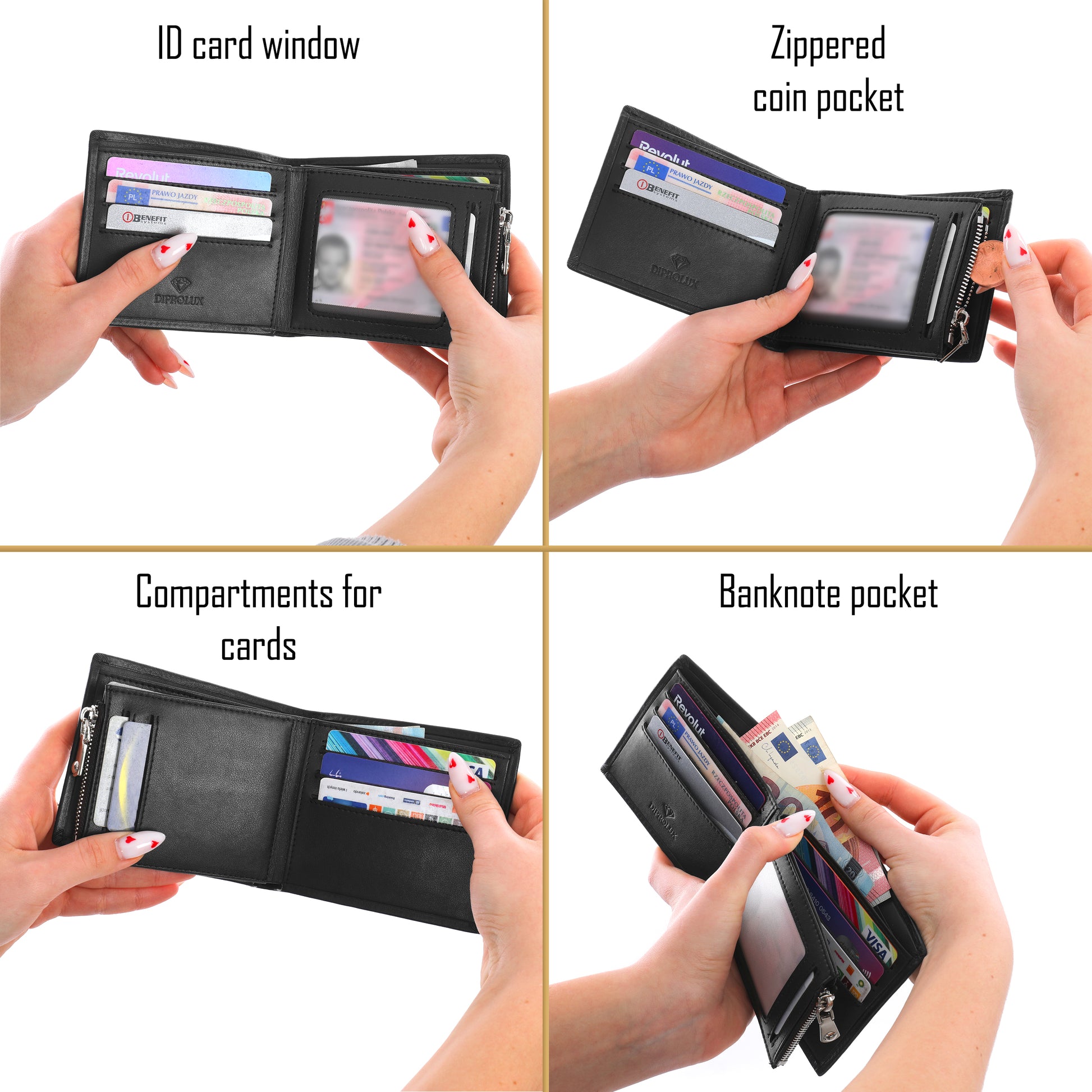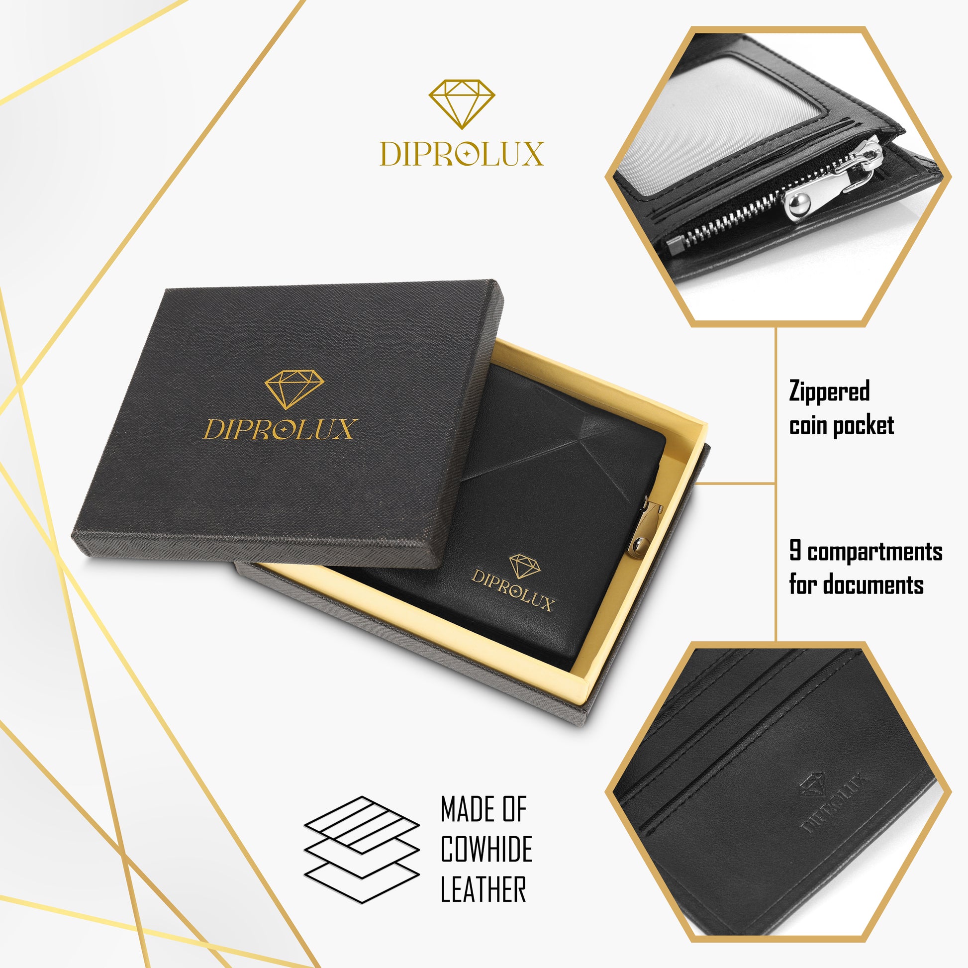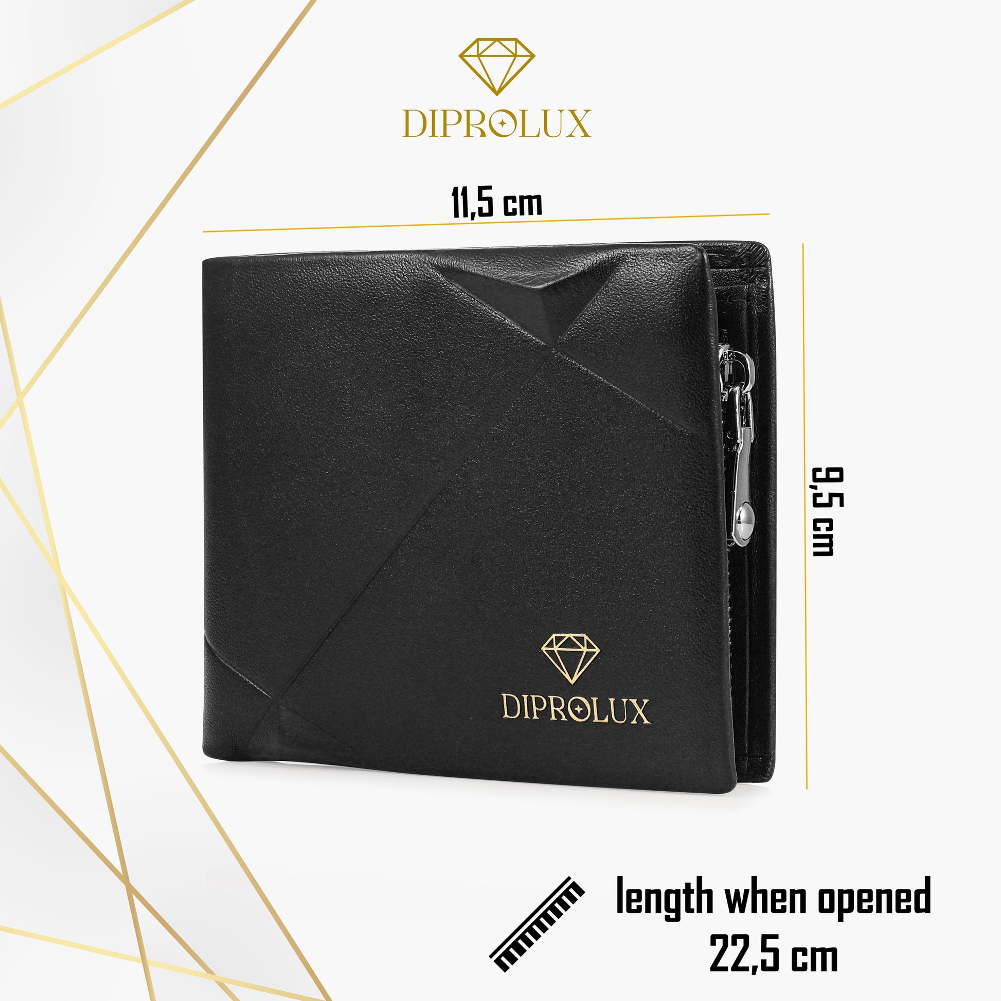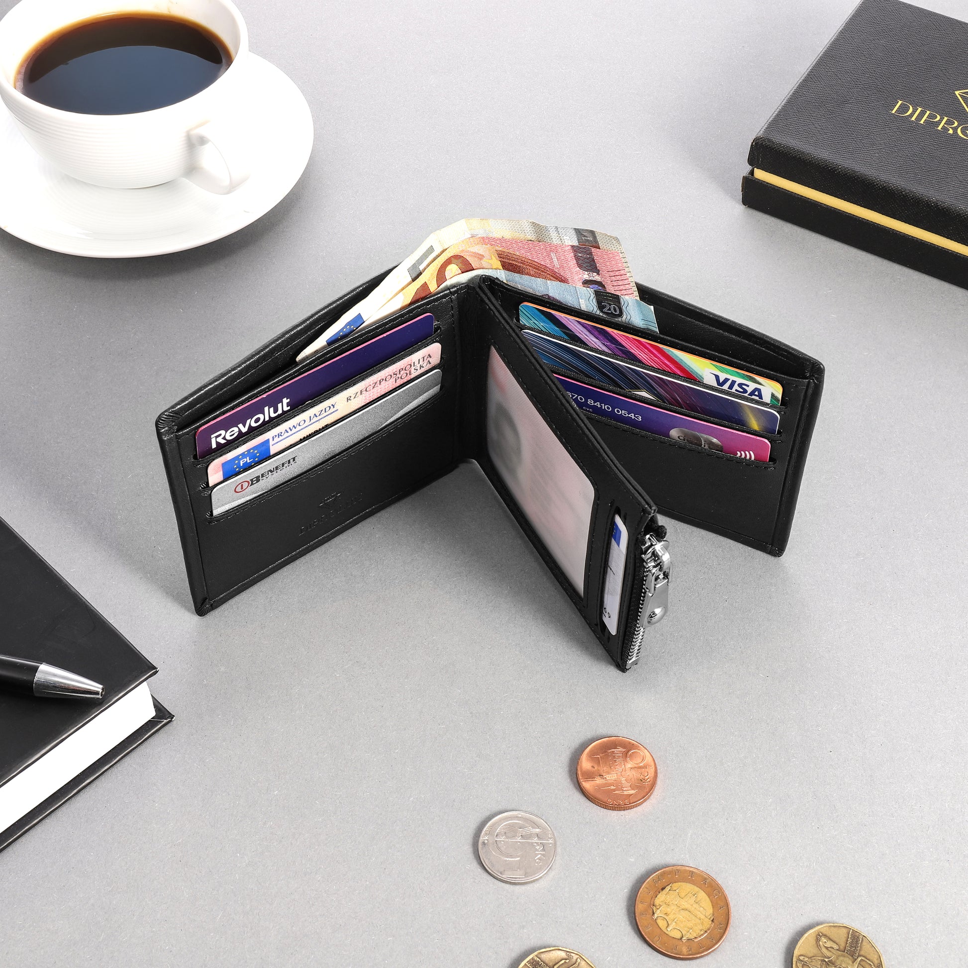 Diprolux Leder- Geldbörse (Rindsleder) für Herren (schwarz), Portemonnaie für Herren, Brieftasche für Männer, Geschenkidee für den modernen Mann, Geldbörse mit RFID- Schutz (schwarz)